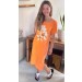 Dress Midi Manga Flores Laranja Cítrico