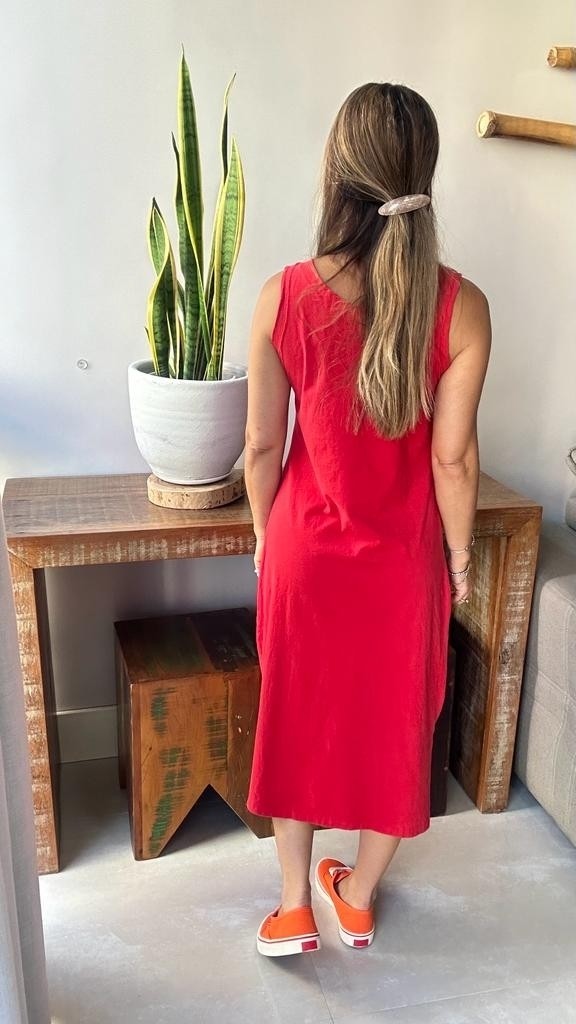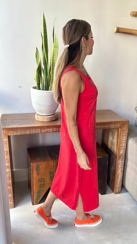 Vestido Midi Regata Paisagem Com Cacto Vermelho